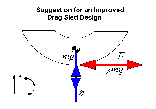 Answer: Although the normal force moves forward to cancel the torque due to friction, this is not a desirable situation. The frictional force varies slightly with the nature of the surface. The normal force then moves its line of action back and forth to compensate. This means that the amount the sled tips up varies and leads to "chatter".