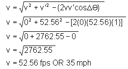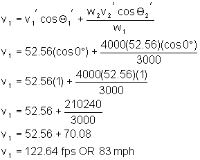 So, the post collision speed of the combined units in both collisions is 52. 56 ft/sec (35.85 M/h or 57.7 km/h).