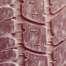 In an attempt to document the length of these skid marks you back away from the car and look down its path. Backing away you can see the marks change from their dark character to a lighter mark, then disappear. You conclude that the skid marks begin as shadows, but it is difficult to tell just exactly where they begin.