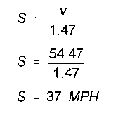 | With the resultant velocity of 54.57 fps, I was able to calculate the speed of the vehicle at the start of the skids- |