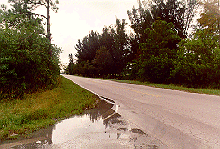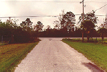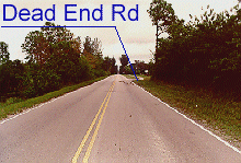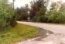 View looking west on Dead End Rd. at the collision intersection. Note: Stop sign has been stolen and is no longer present.Download this 30kb gif