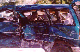 The Aerostar showed one primary contact face. That damage was to the left side of the van. It involved the driver's door, the left side sheet metal, the wiring harness that runs down the left side of the van, and the left rear wheel. The direction for this force was inward and slightly rearward. Note: Prior to photographs, the tires on this vehicle were swapped around by the wrecker driver to ease its removal from the scene.