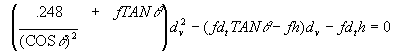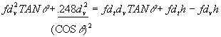 One further note on this equation. When a take-off angle of 45° is used, the a, b and c coefficients of the quadratic are simplified to: