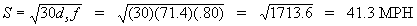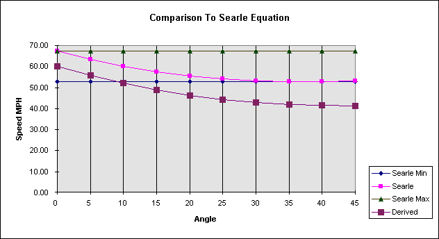 We can see that the two speeds concur with each other so we know our arithmetic is correct. Whenever possible, independent speed estimates should be used. Using Searle’s equation with this same data yields a minimum speed of 52.69 MPH. This is quite a difference. However, when the take off angle is reduced to a more reasonable 10°, the Searle minimum equation yields 52.69 MPH and this equation 51.87 MPH.