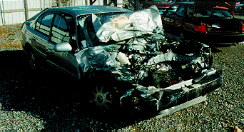 The photo at left shows a field crash from the NHTSA crash files involving a 1998 Chevrolet Malibu and a parked truck.