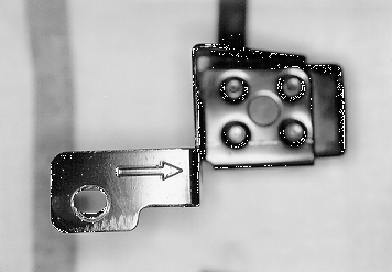 Sensor 6This image shows the rear portion of the metal arms on either side of the medial plane. When a collision of great enough magnitude occurs the gold ball travels forward enough to contact the arms and close the switch, sending a signal to the diagnostic module to arm the system. |