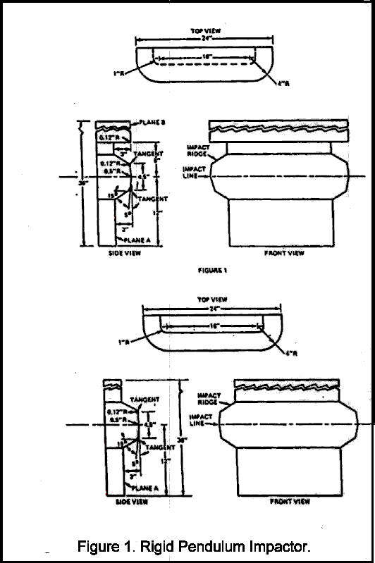 using a rigid pendulum mass. It also requires that the vehicle being tested be driven into