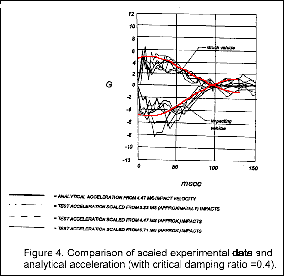 Solutions were then obtained in closed form and the model was validated by adjusting the stiffness and damping parameters, K and C, respectively, so that the output matched actual vehicle crash data presented in [3,5].