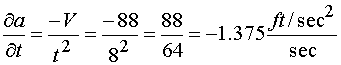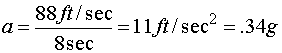 Substituting the measured values of 88 ft/sec and 8 seconds into equation 1: