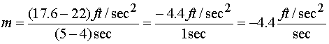 Examining the data we see that acceleration changes by 4.4 ft/sec2