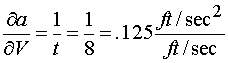 Eq 11 tells us that there is .125ft/sec2 for every 1ft/sec of error. Finding the error for 4 ft/sec is just a matter of multiplying the unit value of the derivative (Eq 11) times the uncertainty.